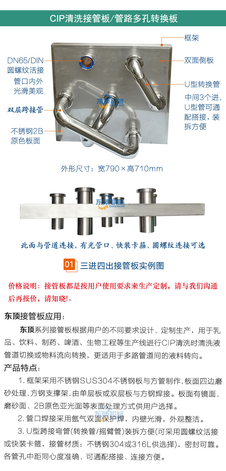 接管板管道转换板CIP清洗管路分配盘